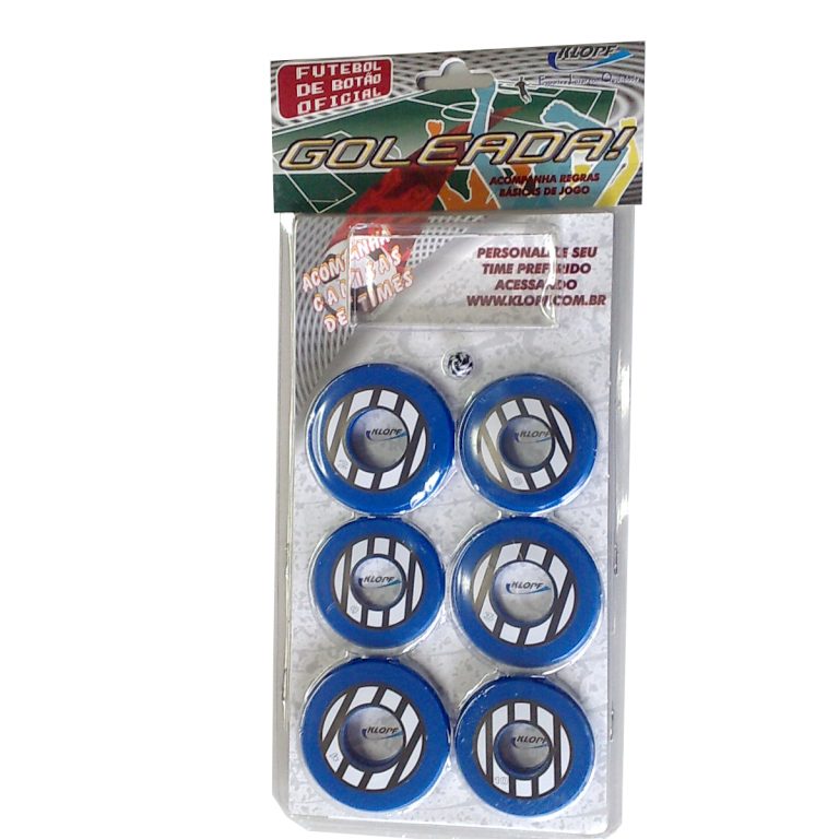 Blister contendo um time de futebol de mesa Azul preto e Branco com: