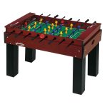 • Construção em Madeira Maciça: A estrutura deste pebolim é feita de madeira maciça com a aplicação de verniz tingido, conferindo uma aparência sofisticada e garantindo a durabilidade do jogo.